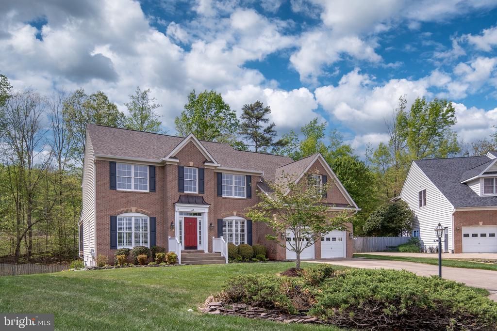Perfectly located Cul de Sac home in a desirable community with updated features new owners will appreciate. Move in ready, immaculately manicured and maintained home offers many functional spaces with a traditional layout beginning with the welcoming 2 story wainscoting foyer flanked by formal dining and sitting areas detailed with crown molding and chair railing ready for gatherings. The main level living floor also includes an inviting two-story family room with gas fireplace and massive windows bringing in natural light throughout the day. Main Level doorways and windows include Pediment detailing. Custom designed plantation shutters convey. An open floor plan connects the family room area to eat in kitchen which includes abundant cabinets, gas cooktop island, double wall oven, large pantry and flows into a butler’s style/kitchen prep area making storage and entertaining a delight. Kitchen area allows outside access through French doors to a large rear deck. The mudroom and main level laundry are just steps away from the oversized 2 car garage with shelving and ample workspace. A large private office with French doors leads to a screened in porch with ceiling fan/shades that also connects to the rear decking area. Bamboo and hardwood flooring throughout the main level. Bamboo staircase and upper-landing area on second story offers a potential seating area. Primary bedroom with oversized suite has carpet, vaulted ceiling, wainscoting, two walk in closets, and connecting full bath (freshly painted, new upgraded sinks, mirrors, lighting) a soaking tub, shower, (private toilet). Bedrooms 2,3, and 4 are freshly painted with new carpet. Upstairs 2nd full bath has new sinks, mirrors and lighting. Finished lower-level areas include spacious carpeted recreation/fitness space with a large storage closet. A private guest/additional bedroom #5 with 2 large closets. A full bathroom #3. A functional hobby/craft room-with linoleum flooring, water hook up , cabinets and counters await. Unfinished oversized storage room with shelfing. Rec room has a new slider door at walkout level connecting to poured-stamped patio area with firepit, large fenced back yard lined by wooded area with storage shed, raised gardening bed and mature shrubs. Home has lawn sprinkler system. Neighborhood is connected to amenity-filled living with a community pool, playgrounds, tennis courts, clubhouse, shopping and minutes from I95, RT1, EZPass lanes, Embrey Mill Town Center, Stafford Market Place, commuter lots, major commuter routes, military bases, and medical facilities.